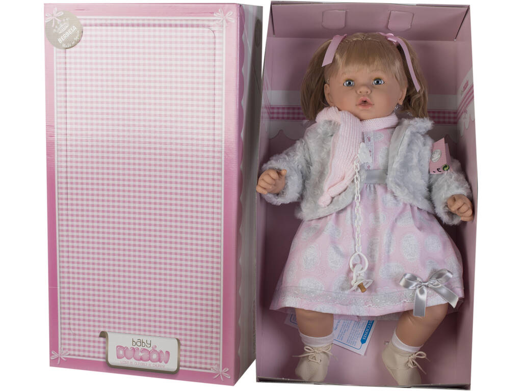 Puppe Baby Sweety Girl 62 cm. Weinend Graue Weste Berbesa 8043