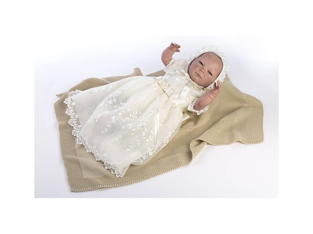 Puppe Reborn 52 cm. Taufkleid in creme Farbe Berbesa 5304